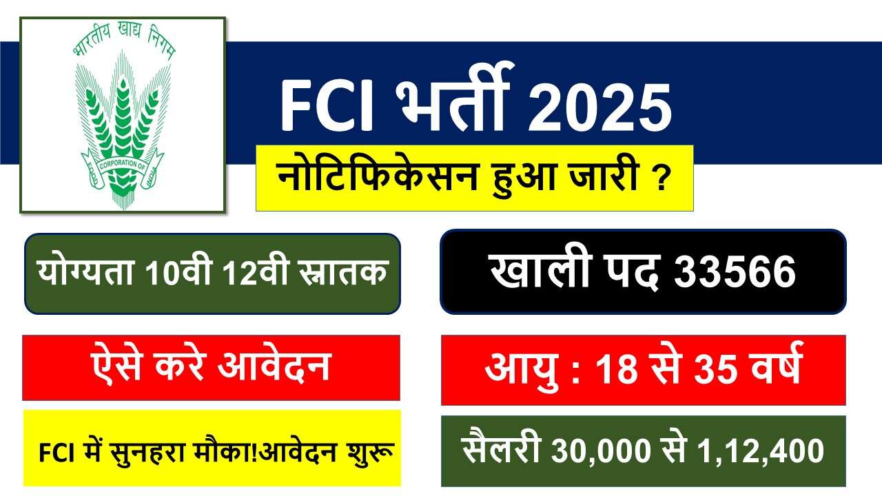 FCI Recuirtment 2025 New : FCI भर्ती 2025 सरकारी नौकरी की तैयारी करने वाले उम्मीदवारों के लिए एक शानदार अवसर है। इच्छुक उम्मीदवारों को सलाह दी जाती है कि वे समय रहते FCI Recuirtment 2025 परीक्षा की तैयारी में जुट जाएं।